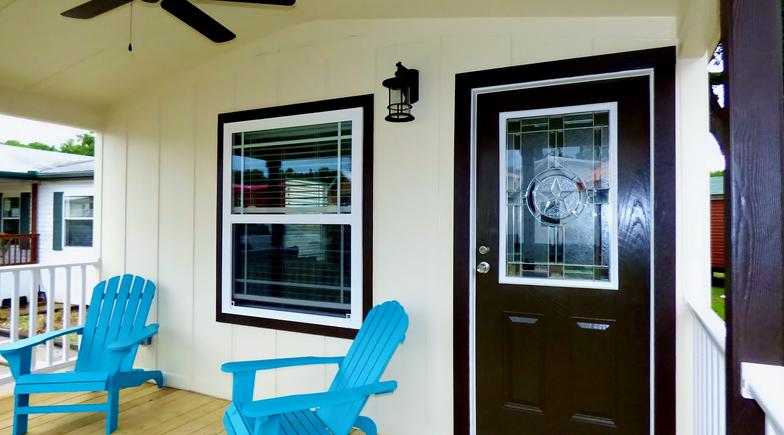 Please note: All pictures displayed may include added options. From time to time, available options and styles change. Some features shown in the pictures may no longer be available. Call1-877-219-4059 to discuss in detail or email us at sales@recreationalresortcottages.com
