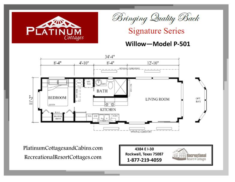 Please note: All pictures displayed may include added options. From time to time, available options and styles change. Some features shown in the pictures may no longer be available. Call1-877-219-4059 to discuss in detail or email us at sales@recreationalresortcottages.com