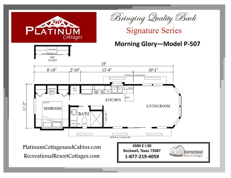 Please note: All pictures displayed may include added options. From time to time, available options and styles change. Some features shown in the pictures may no longer be available. Call1-877-219-4059 to discuss in detail or email us at sales@recreationalresortcottages.com
